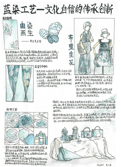 陈文茜同学作品《蓝染工艺——文化自信的传承创新》。