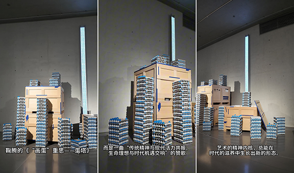 廖悦彤同学短视频作品《琴台美术馆作品解读之鞠腾的“画蛋”重思——蛋塔》截图。
