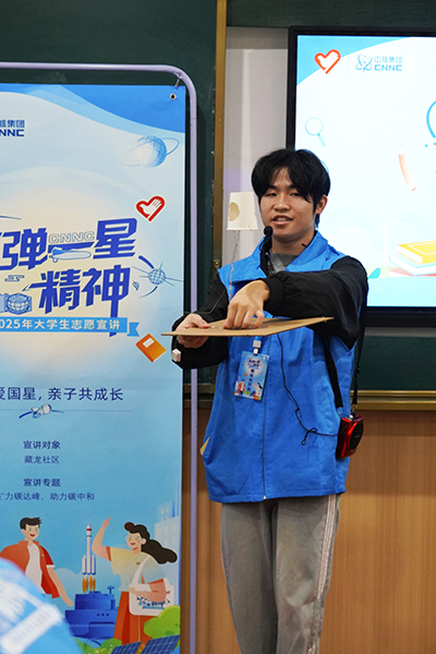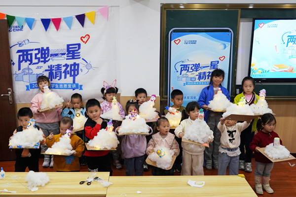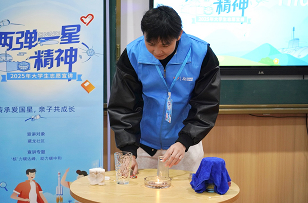 作为入选了团中央2025年全国大学生“两弹一星”精神志愿宣讲活动的团队,志愿者们为了这次活动做足了准备,不仅有生动的宣讲,还安排了科学小实验和亲子手工,就是要让环保知识在欢乐中浸润童心。